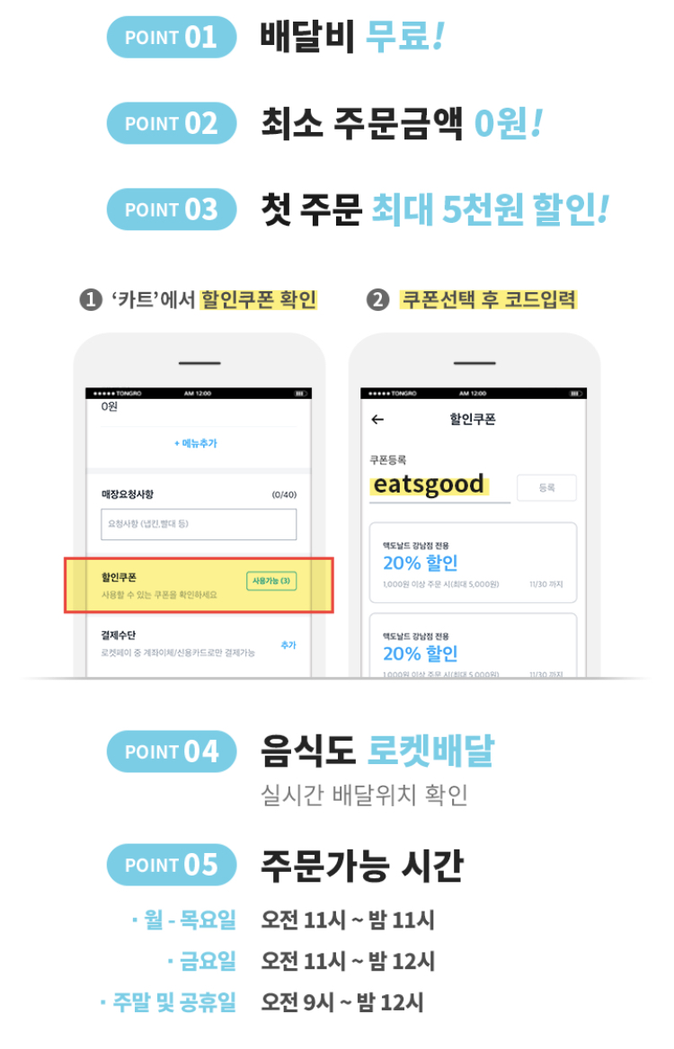 현재 할인쿠폰 'EATSGOOD'을 입력하면 20% 할인 구폰을 받으실 수 있습니다.