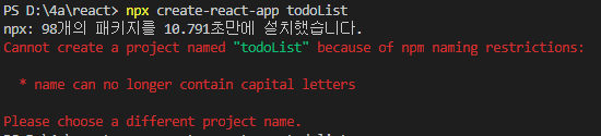 Cannot create a project named "todoList" because of npm naming restrictions:
